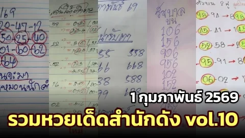 เลขเด็ด เลขมาเเรง เลขดัง "รวมหวยเด็ดสำนักดัง vol.10" งวดวันที่ 1 กุมภาพันธ์ 2569